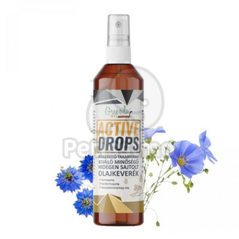 Active Drops kiváló minőségű hidegen sajtolt olajkeverék. Lenmagolaj, kendermagolaj, feketeköménymag-olaj összetétellel. A hidegen sajtolt olajak gazdagok többszörösen telítetlen és esszenciális zsírsavakban (pl. Omega 3, 9), antioxidánsokban, melyek jótékonyan hatnak az immunrendszerre, a vázrendszerre és a kültakaróra. - A lenmagolaj kiemelkedően magas Omega-3 tartalma segít a csontfejlődésben, az aktív életet élő szervezet csontjainak egészségében. - A k