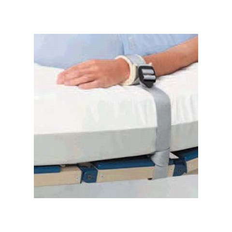 Csukló rögzítőpánt ágyhoz. Rögzítést igénylő páciensekre tervezve. Nem rögzítik teljesen a pácienst. Lehetővé teszi a testhelyzet megváltoztatását. 1 db Újrahasznosítható és biológiailag lebomló polipropilén. Könnyű állíthatóság a tépőzárak és a csato