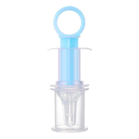 Adagoló folyékony gyógyszerhez babáknak, mérőkupakkal, kék, 13 x 3,8 cm