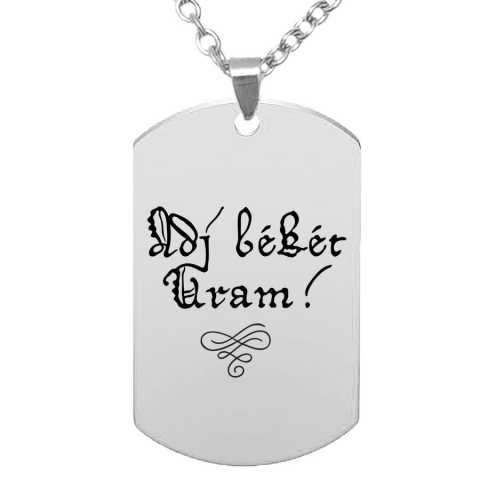 Választható rozsdamentes alumínium medál, vagy nemesacél tükörpolírozott kivitel is, arany vagy ezüst színekben. Az alapár az alumínium medálra vonatkozik lánccal vagy kulcstartóval együtt (válassz a listából, vagy rendeléskor írd be