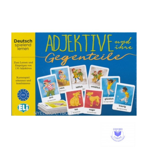 Az Adjektive und ihre Gegenteile mellékneveket és azok ellentétét gyakorló társasjáték A1-B1 szinten. Az Adjektive und ihre Gegenteile nagyon egyszerű, egyben hasznos és szórakoztató társasjáték, amelynek során illusztrált mellékneveket kell megfelelő el