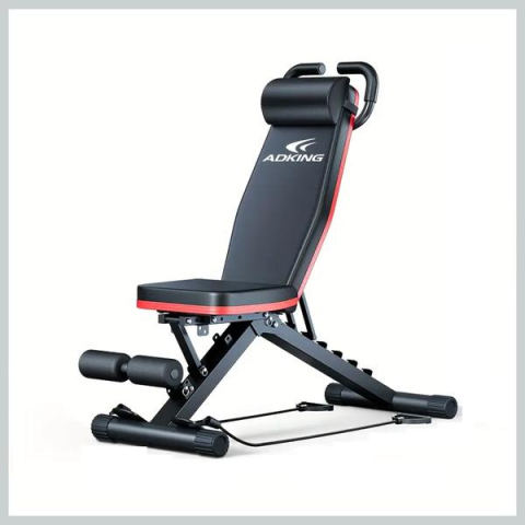 ADKING állítható edzőpad – dönthető háttámlával RT1977879Professzionális kialakítású, sokoldalúan használható állítható edzőpad, amely ideális választás otthoni erősítő edzésekhez. Kiválóan alkalmas has-, mell-, hát- és vállgyakorlatokhoz, valamint súlyzós edzéshez is. A masszív acélszerkezet és a kényelmes szivacsozás biztonságot és komfortot nyújt edzés közben.Főbb jellemzők:Dönthető háttámla több fokozatbanTartós acélváz szerkezetPárn