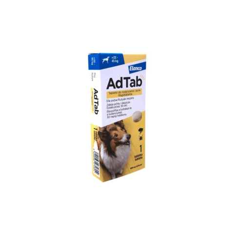 Az AdTab egy kicsi, hús ízű rágótabletta kutyák részére, ami gyorsan hat bolhák és kullancsok ellen. Biztonságos, hatékony és már két órán belül elkezd hatni. A készítmény alkalmazható 8 hetes vagy annál idősebb és 1,3 kg vagy annál nagyobb testtömegű kutyák kezelésére, biztonságosságát ellenőriztük, és a h