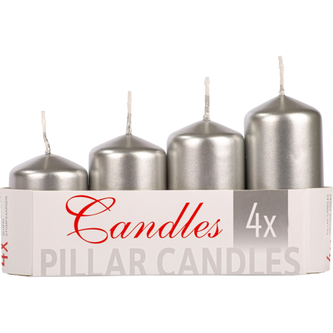 60, 70, 80, 90 mm magasságú adventi gyertyák ezüst színben.