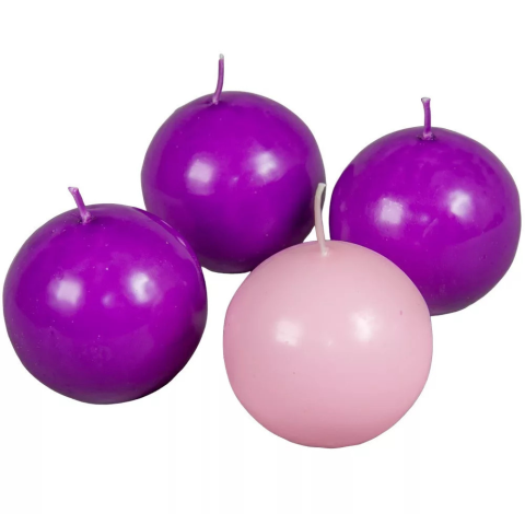 1 kép Adventi mártott gömb gyertya 4db/cs - lila, rózsaszín