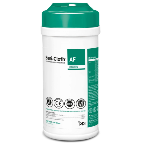 Sani törlőkendők – univerzális fertőtlenítő törlőkendők x 200 [Canitster] A Sani-Cloth® AF Universal alkoholmentes, kvaterner ammónium alapú készítmény.