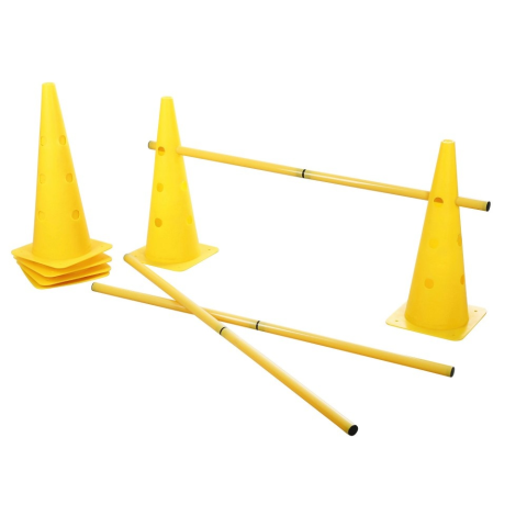 1 kép Agility ugrószett, sárga, három akadállyal, 6 bólyával, akadály és szlalompálya egyben