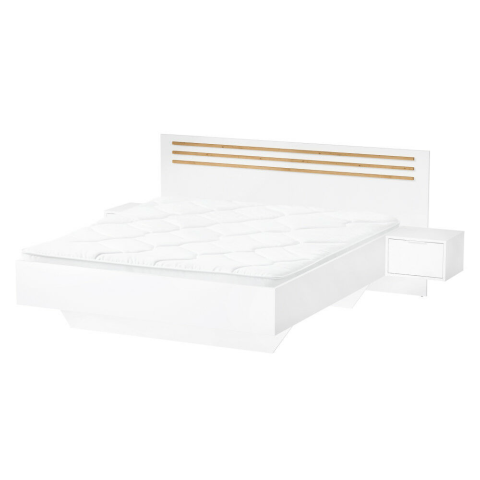 1 kép Ágy + 2x éjjeliszekrény, fehér/artisan tölgy, 180x200, FLORENS