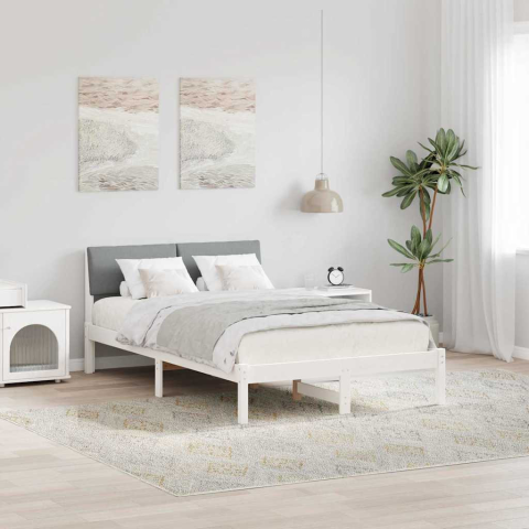 Ágykeret Fehér és világosszürke 120 x 200 cm Tömör fenyőfa ágy és ágykellék 1 kép