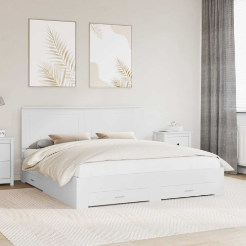 Ágykeret fejtámlával fiókkal Fehér 180 x 200 cm Faanyag