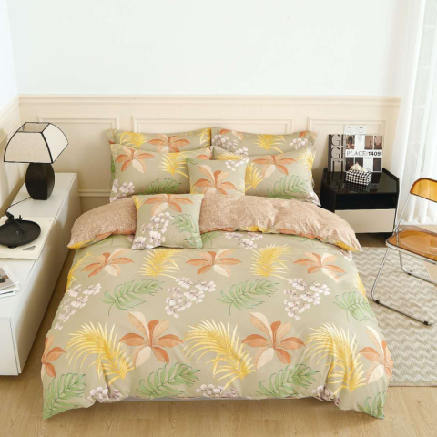 Ágyneműhuzat Adriana zöld sárga pálma leveles 3 részes lakástextília termékleírás