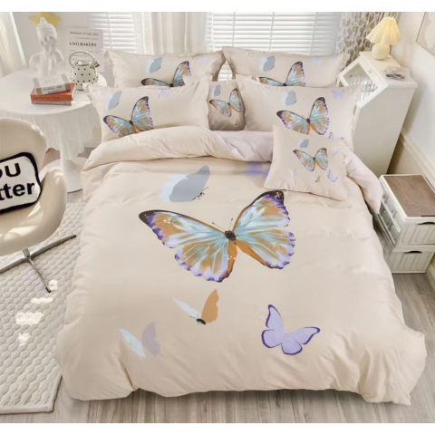 Teljes Ágyneműhuzat Aisha lila bézs nagy pillangós 3 részes termékleírás