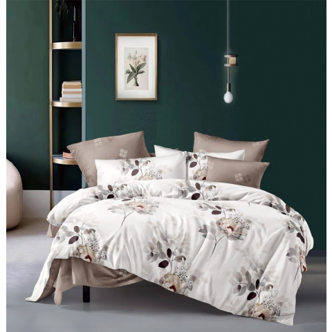 1 kép Ágyneműhuzat Aliyah fehér bézs nagy virág 3 részes