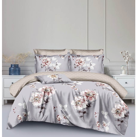Ágyneműhuzat Allure szürke nagy fehér virágos 7 részes lakástextília termékleírás