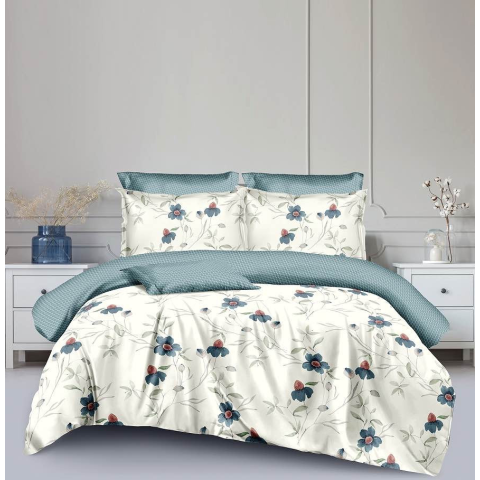 Ágyneműhuzat Allure törtfehér kék kis virágos 3 részes lakástextília termékleírás