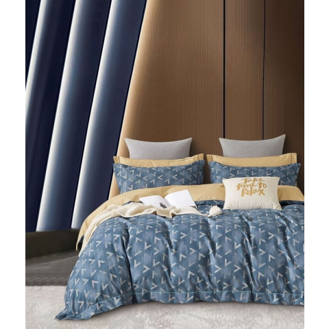 Ágyneműhuzat Almira Flanel kék háromszög mintás 3 részes lakástextília termékleírás