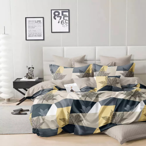 Ágyneműhuzat Almira sárga szürke leveles 3 részes lakástextília termékleírás