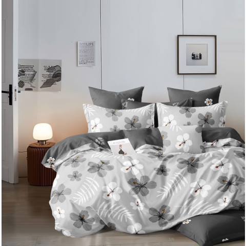 Ágyneműhuzat Aubrey szürke fehér virágok 3 részes lakástextília termékleírás