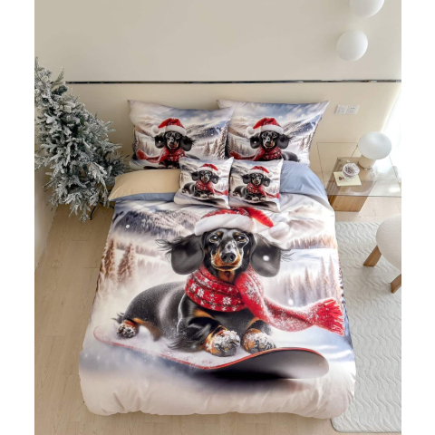 Ágyneműhuzat Karácsonyi Flanel havas tacskós 3 részes lakástextília termékleírás