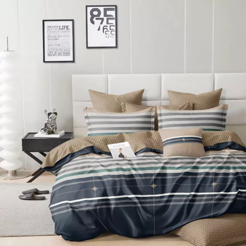 Ágyneműhuzat Milton bézs kék csíkos 3 részes lakástextília termékleírás