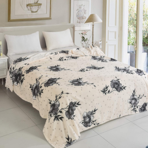Ágytakaró Dorsia Krém szürke virágos 150x200cm lakástextília termékleírás