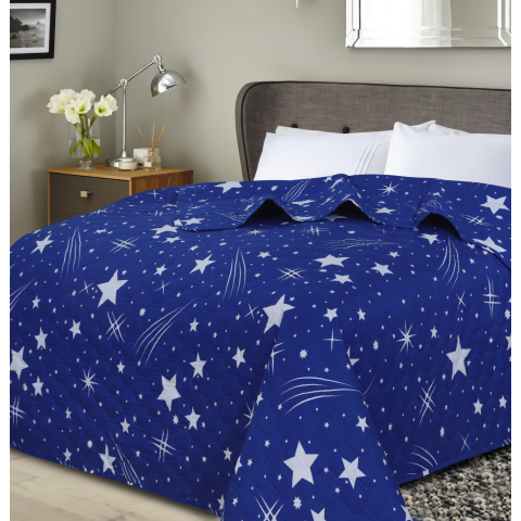 Varázsolja hálószobájába az éjszakai égbolt báját ezzel a stílusos kék ágytakaróval. A finom fehér csillagok motívuma játékos, de egyben nyugtató hatást is kelt.