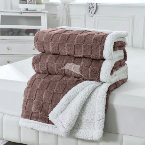 1 kép Ágytakaró pléd Norveg Lux Kockás kétoldalas Barna 200x230cm