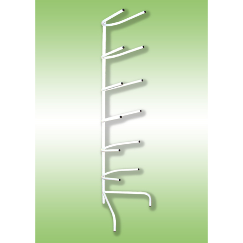 Termék leírás: - elektrosztatikus porszórással festett acél vázszerkezet, - 6 db ágytál tárolására szolgál. -Az ágytál könnyen kiemelhető, és visszahelyezhető a tartó villára. -A váz alapszíne fehér, igény esetén készülhet egyéb színekben is. Méretek
