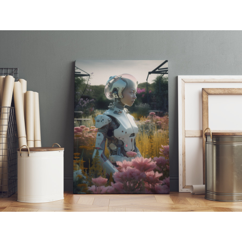 1 kép Ai Generált Fantasy Vászonkép - Robot Lány a Réten