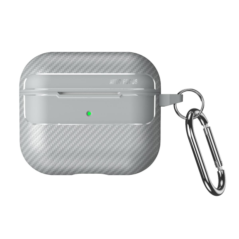 1 kép AirPods 3 tartó - Carbon mintás szürke, karabinerrel