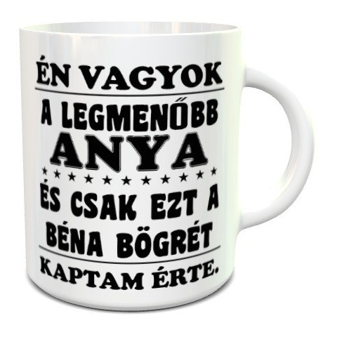 Ajándék anyának, vicces bögre édesanyáknak. Én vagyok a legmenőbb anya, és csak ezt a béna bögrét kaptam érte. Tréfás feliratos bögre több színben, kialakításban anyukáknak névnapra, szülinapra, karácsonyra. Egyedi nyomtatású bögréink kiváló választáso