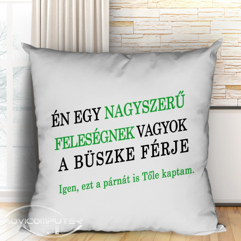 Párna férfiaknak, nagyszerű feleség férje. Én egy nagyszerű feleségnek vagyok a büszke férje párna, többféle színben. Ajándék karácsonyra, születésnapra, névnapra férjednek vagy édesapáknak is apák napjára. A minta tartós, nem kopik le. A párna mérete 40x