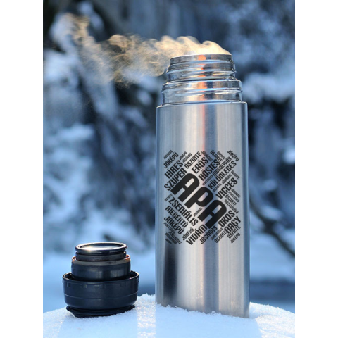Ajándék apának. Apás termosz. Termosz férfiaknak, édesapáknak. Ajándékötlet születésnapra, névnapra apáknak kedves szavakkal. Termosz melyet télen és nyáron is magával vihet a munkába, mérete 500ml vagy 750ml. Anyaga fém és műanyag. Stílusos és praktik