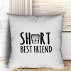 Ajándék barátoknak, Short Best Friend párna. Lepd meg a kis legjobb barátodat/barátnődet egy Short Best Friend feliratú párnával. A párna mérete 40x40 cm, a huzat praktikus húzózárral ellátott, így könnyen levehető és tisztítható. A huzat strapabíró mi