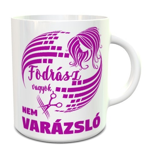 Szakmás bögre, fodrász vagyok nem varázsló. Fodrász vagyok nem varázsló felirattal, tartós minta, akár mosogatógépben is tisztítható. Meglepetés szakmás bögre fodrászod számára vagy családtagod, barátod születésnapjára, karácsonyra. Rendelj mellé díszdobo