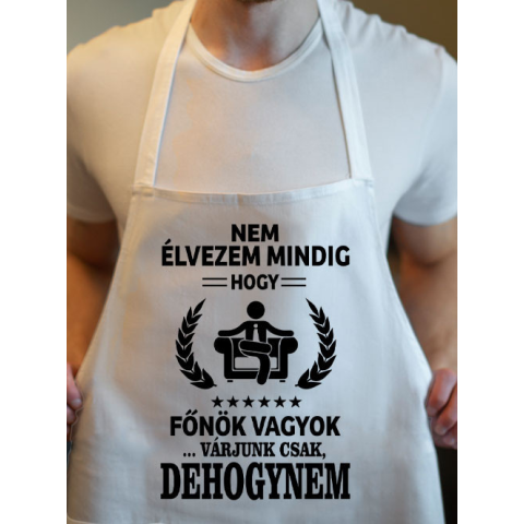 Ajándék főnöknek, vicces feliratos kötény. Nem élvezem mindig, hogy főnök vagyok.. várjunk csak, dehogynem! Kötény csakis igazi főnököknek születésnapra, névnapra. Lepd meg vele családtagodat, barátodat vagy a főnöködet. Fehér vagy fekete színben rendelhe