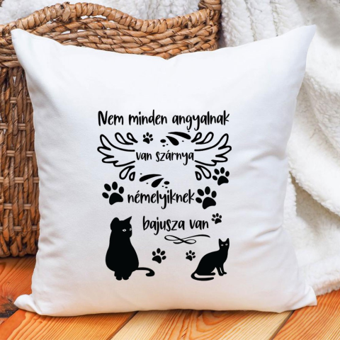 Ajándék gazdiknak, cicás párna. Párna macskás gazdiknak, Nem minden angyalnak van szárnya, némelyiknek bajusza van felirattal. Tökéletes meglepetés barátodat, családtagodat egy ilyen párna, ha szereti a macskákat. Válaszd ki a párna hátuljának színét! Mé