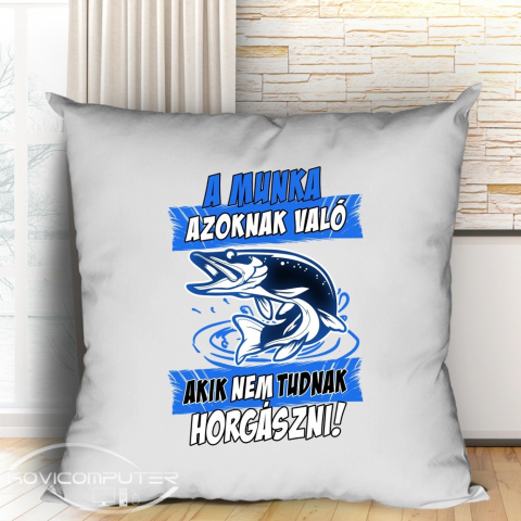 Poénos horgász párna, munka azoknak való. A munka azoknak való akik nem tudnak horgászni humoros feliratos párna pecásoknak, kiváló meglepetés minden szorgos horgásznak. 40x40 cm méretű húzózáras huzat, és puha bélés. A minta tartós, mosógépben bátran mo