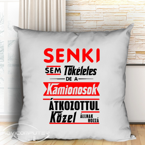 Kamionos ajándék, senki sem tökéletes párna. Senki sem tökéletes, de a kamionosok átkozottul közel állnak hozzá feliratos párna. Párna belső és mosható huzat egyben, garantáltan tartós nyomat, tökéletes ajándék és mindennapi használati tárgy. A párna m