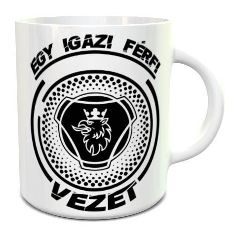 Ajándék kamionosoknak, Scania bögre. Egy igazi férfi Scaniát vezet feliratos bögre. Egy Scaniás bögrere minden Scania tulajdonosnak szüksége van, ha ismersz ilyen embert lepd meg őt vele. A bögre többféle színben, és kialakításban rendelhető akár díszdobo