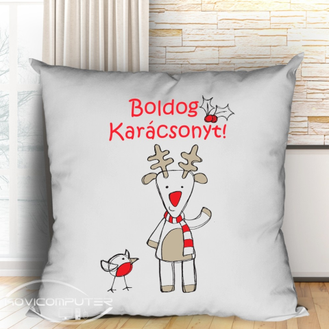 Ajándék karácsonyra, Boldog Karácsonyt párna. Karácsonyi párna cuki rénszarvas figurával. Kívánj Boldog Karácsonyt ezzel a díszpárnával Te is! Ajándék férfiaknak, nőknek többféle színben húzózáras huzattal, puha béléssel. 40 x 40 cm. A párna mérete 40