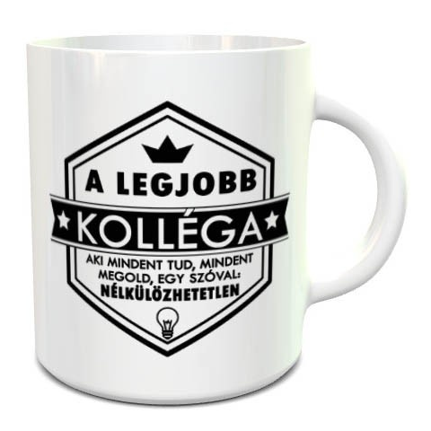 Bögre a legjobb kollégának, ajándék munkatársnak búcsúztatóra, születésnapra, névnapra. Munkatársainkkal legtöbb esetben több időt töltünk, mint családunkkal. Lepd meg őt munkahelyi búcsúztató alkalmával, vagy születésnapján egy feliratos bögrével. Egy