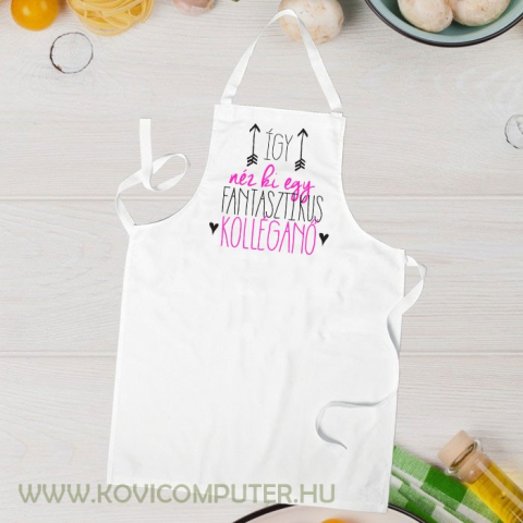 Ajándék kollégának, kötény kolléganőnek. Vicces feliratos kötény Így néz ki egy fantasztikus kolléganő felirattal. Lepd meg munkatársadat egy köténnyel, születésnapra, névnapra vagy akár karácsonyi ajándéknak is ideális választás lehet. Fekete színben is