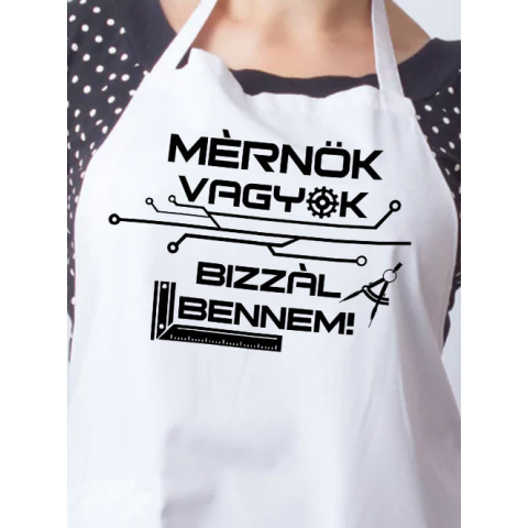 Ajándék mérnöknek, mérnök vagyok kötény. Mérnök vagyok, bízzál bennem felirattal kötény, praktikus ajándék, főzni szerető nőknek és férfiaknak, akik szakmájukban is kiválóak. Lepd meg vele barátod, apukád vagy mérnök családtagod. A kötény fekete vagy fehé