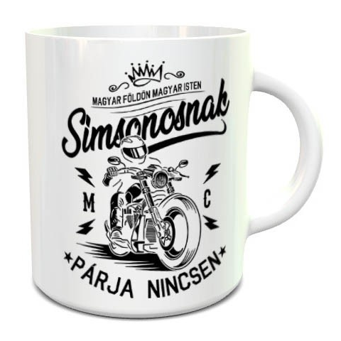 Ajándék motorosoknak, Simsonos bögre. Magyar földön magyar Isten, Simsonosnak párja nincsen feliratú bögre. Szuper ajándék a Simson kedvelőinek. A bögrét és a rajta lévő minta színét is te választhatod ki. Válassz hozzá illő ajándék dobozt is. Egyedi n