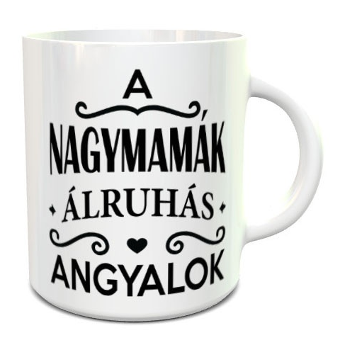 Ajándék nagymamáknak, bögre nagyszülőnek. A nagymamák álruhás angyalok. Lepd meg nagyszüleidet egy tökéletes ajándékkal karácsonykor, szülinapra. Többféle színben rendelhető bögre nyomtatás, kerámia, zománc vagy üveg bögrére. Egyedi nyomtatású bögréink