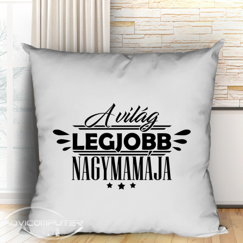 Ajándék nagymamáknak, legjobb nagymama párna. A világ legjobb nagymamája feliratos párna, amit kimondottan anyák napjára és karácsonyra ajánlunk, amennyiben a legjobb ajándékot keresed nagymamádnak. Mérete: 40 x 40 cm, tartalmazza a húzózáras huzatot, és