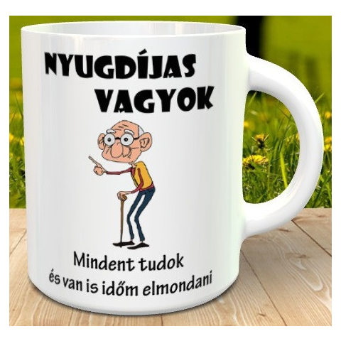 Ajándék nyugdíjasnak, tréfás bögre bácsiknak. Vicces meglepetés beszélgetni szerető családtagodnak, ismerősödnek, ez a tréfás feliratú Nyugdíjas vagyok, mindent tudok és van is időm elmondani bögre, bácsi mintával. Anyaga kerámia vagy zománc. Válaszd ki a