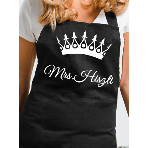 Ajándék pároknak, Mrs. Hiszti kötény szerelmednek, akit akkor is szeretsz, amikor kicsit hisztisebb kedvében van. Add oda neki ezt a kötényt, amikor legjobban illik rá ez a jelző. Férfi és női verziójú kötény is rendelhető fekete vagy fehér színben. Eg