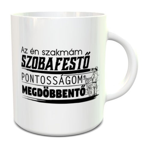 Szakmás bögrék, én szakmám szobafestő, pontosságom megdöbbentő bögre amit csak a legjobb szobafestők tarthatnak a kezükben. Ajándékozd meg családtagod, barátod ha ő a legjobb szobafestő a környéken vagy háláld meg munkáját a szobafestőnek aki nálad dolgoz